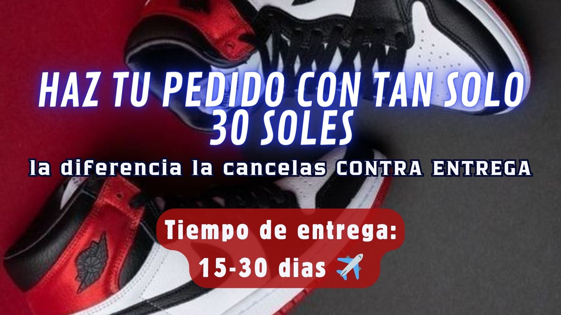 EJEMPLO: El precio de las zapatillas es de 300 soles, realizas tu pedido con tan solo 30 soles, la diferencia que seria 270 soles la pagas CONTRA ENTREGA.